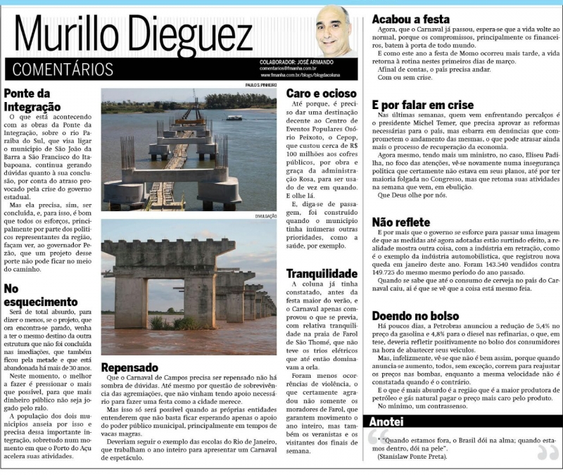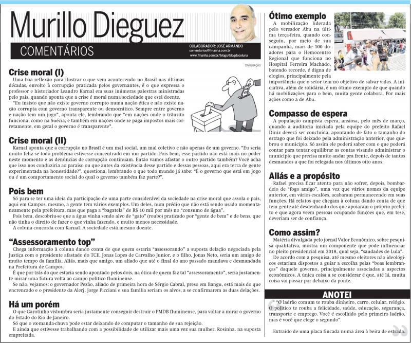 Crise Moral - Sexta Feira, 17 de Fevereiro de 2017