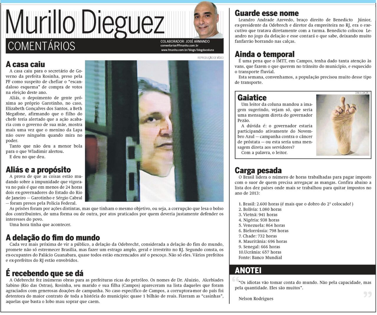 [embed]https://www.youtube.com/watch?v=G99MITWjyTA[/embed] Assista também BOECHAT COMENTA: A NOVELA DA MULHER DE (GAROTINHO). NA SUA TRANSFERÊNCIA PARA PRESIDIO NO RJ. [embed]https://www.youtube.com/watch?v=77k78BchItc[/embed]
