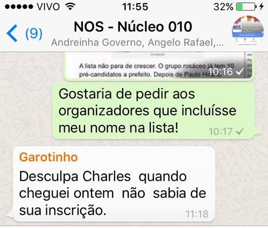 As legendas foram representadas por seus presidentes municipais, Edson Batista do PTB, Renatinho do PTC, Kellinho do PR, Luciano Freitas do PMB, Orlando Portugal do Solidariedade, Wainer Teixeira do PHS, Otávio Amaral do PT do B, Paulão do PSD, Gilson do PRTB, Vinícius Madureira do PRP, Miguelito do PSL e Mauro Silva representando o PSDB.