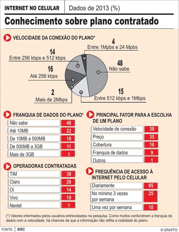 Pesquisa do Idec com 524 usuários de internet no celular revela que eles sabem muito pouco sobre o serviço que contrataram e estão insatisfeitos com a cobertura, a velocidade e a estabilidade da conexão.