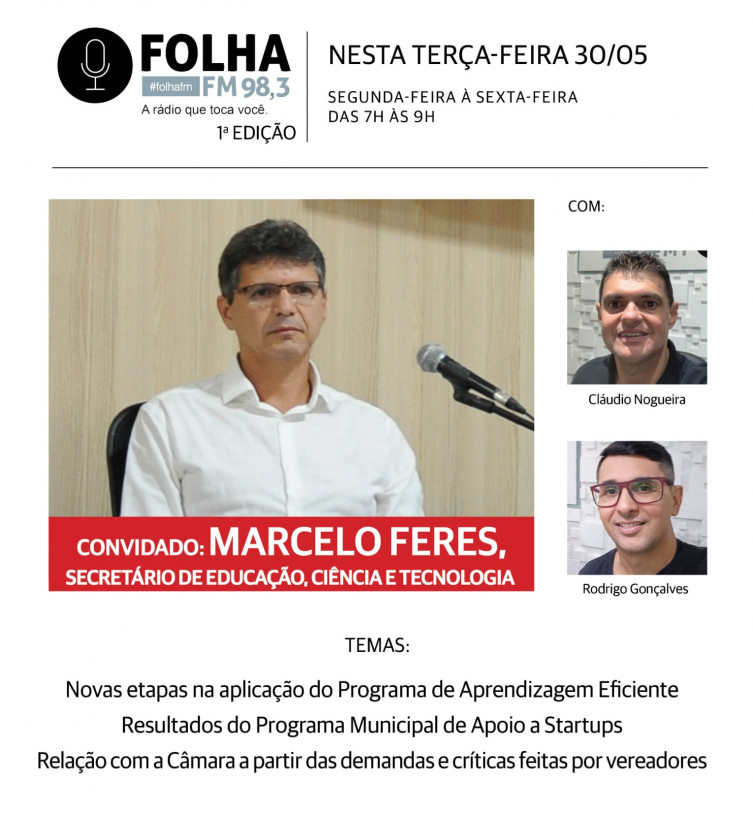 Para acompanhar a entrevista é só ficar ligado na Folha FM 98,3 e acessar o site e rede sociais da rádio.