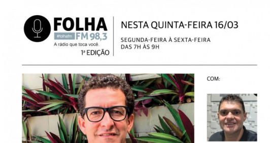 O Folha no Ar pode ser acompanhado, ao vivo, a partir das 7h, não só na Folha FM 98.3, mas também no site e redes sociais da rádio.