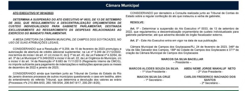 Mesmo já com a maioria simples na Câmara com 13 dos 25 vereadores, algumas questões, mesmo que previamente acordadas na pacificação, podem depender de um pouco mais de apoio, como é o caso da votação das contas da mãe do prefeito, Rosinha Garotinho, que para ter revertido o parecer contrário do Tribunal de Contas do Estado (TCE), precisa de 17 votos.