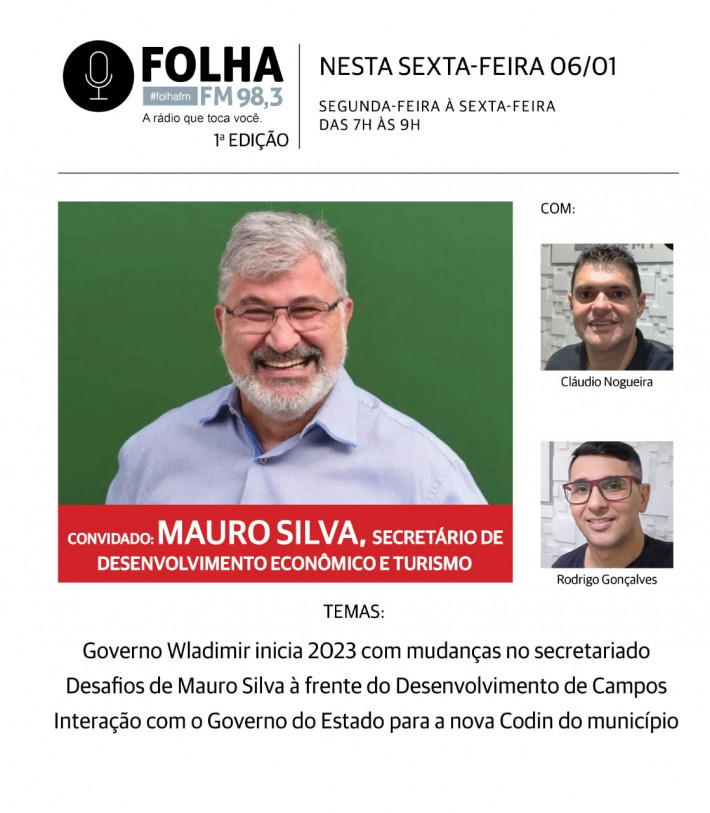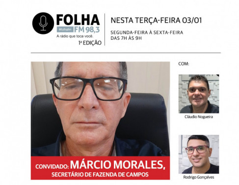 O programa é, ao vivo, partir das 7h, pela Folha FM 98.3 e também pode ser acompanhado no site e nas redes sociais da rádio.