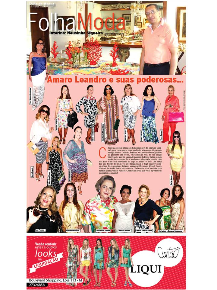 Cristina Aboim abriu seu belíssimo apê do Edifício Caparaó, para comemorar com um lindo almoço, os 60 anos do amigo Amaro Leandro Barbosa que ganhou de presente totem em tamanho real, de sua amiga Ísis Penido, que foi o grande sucesso da festa. Outra sacada muito interessante foi à lembrança elaborada por ele com sua foto e de cada convidada na capa revista Caras. Um luxo!