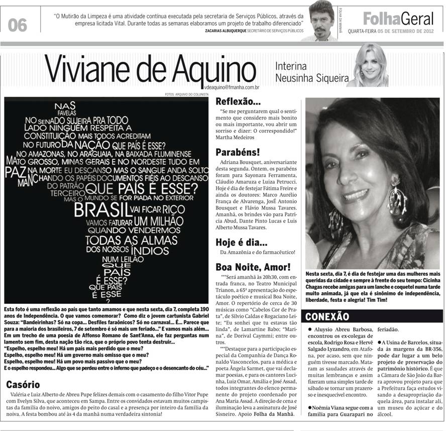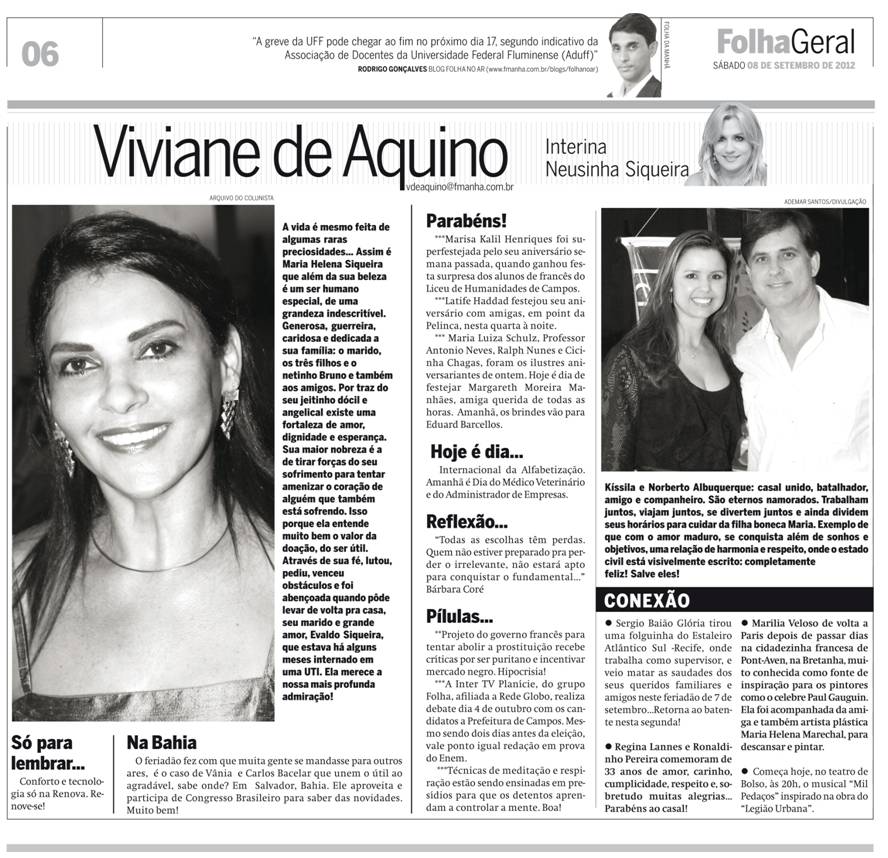 E quando partem, fica muita coisa... Fica a lembrança do sorriso, ficam espaços desocupados... Fica a dor do adeus, a lágrima depois da despedida e a constatação de que nada será como antes... Para curar a dor de uma perda o tempo é o verdadeiro remédio... É nele que conquistamos o consolo... É através dele que nos lembramos dos bons momentos... É como digitais invisíveis, mas sensíveis a olhos atentos... E com um pouco mais de tempo, nossos sonhos ganham aliados, nossa vida conquista anjos... E no fim, além da saudade fica uma certeza: não importa onde estejam, estarão sempre conosco... Aluysio ficará para sempre... Presente em cada palavra escrita, em cada vírgula, em cada interrogação e em cada ponto final!