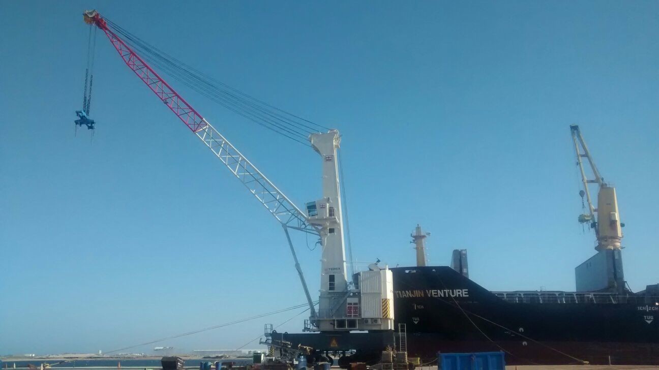 Os guindastes pesam, juntos, cerca de 800 toneladas e possuem um alcance de lança de 46 metros cada. A capacidade de içamento de carga do guindaste é de até 100 toneladas. Com a utilização dos guindastes, a capacidade de movimentação de carga entre o pátio de estocagem do T-MULT e o navio será ampliada em, no mínimo, 30%.
