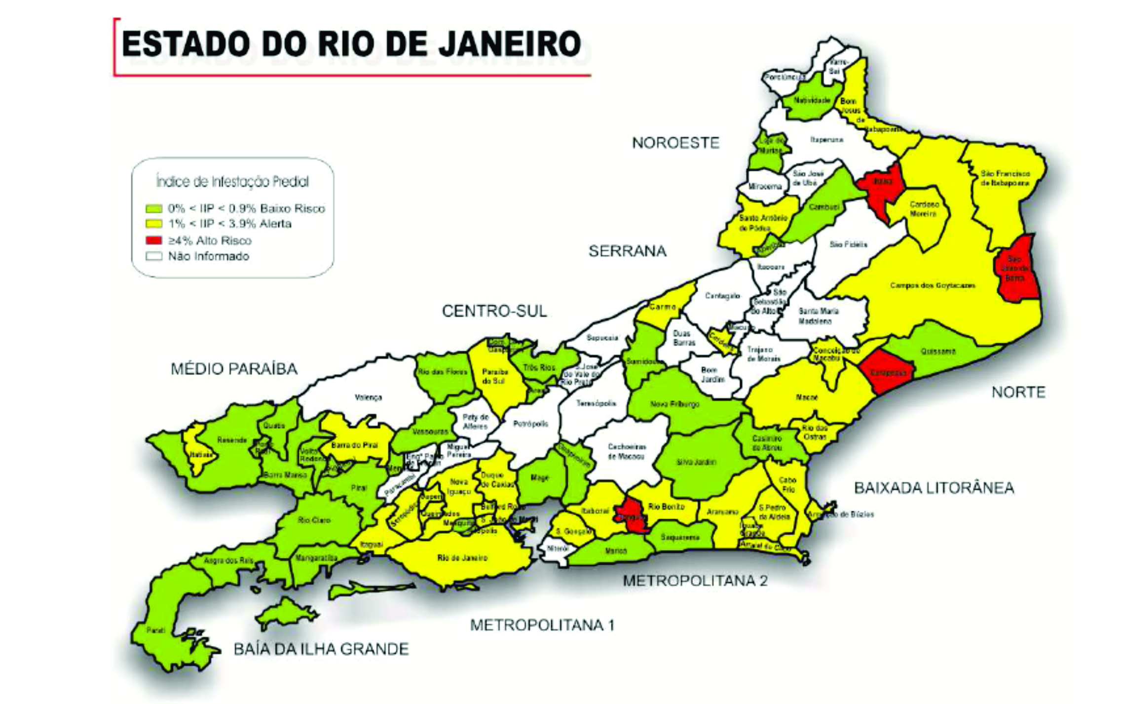 Os resultados correspondem aos índices médios, o que quer dizer que dentro dos municípios podem ser encontradas áreas de alto risco e de baixo risco. Cabe, portanto, às secretarias municipais de Saúde, uma análise mais detalhada para definir a forma de atuação no trabalho de combate à dengue.