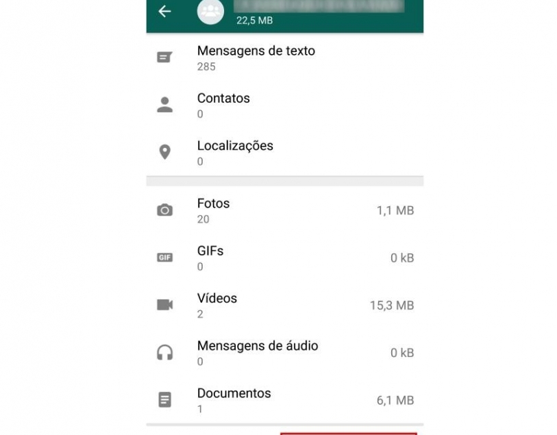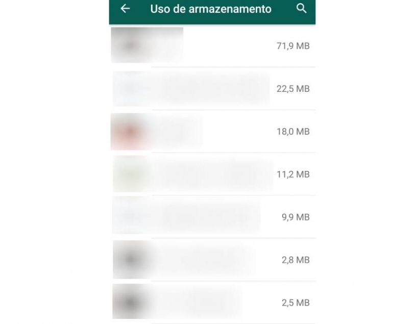 3- Confira a lista para saber qual conversa ou contato está ocupando mais espaço.