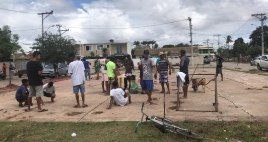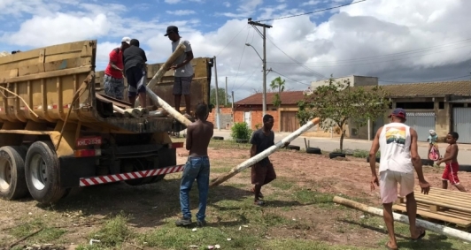 - Entrega de escoras de eucalipto de grande e pequeno portes para a rede de proteção da quadra e para a execução do parquinho infantil.