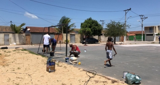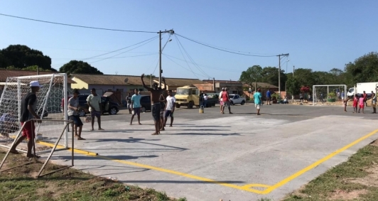 - limpeza, regularização, cimentação e acabamento de todo o piso da futura quadra de esportes.