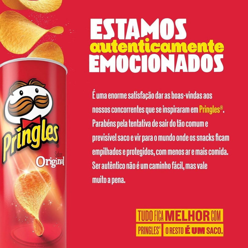 A novidade deixou a concorrente Pringles bem irritada. Ela fez uma postagem em sua rede social, com sarcasmo e bom humor, parabenizando a rival "pela tentativa de sair do comum e previsível saco". Confira abaixo: