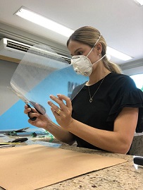 Os face shields estão sendo produzidos, seguindo as normas e exigências da ANVISA, por uma equipe composta por alunos da Arquitetura e Urbanismo e Engenharia de Produção.