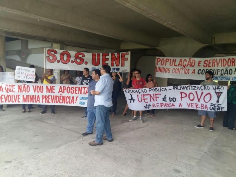 Professores da Universidade Estadual do Norte Fluminense (Uenf), em Campos dos Goytacazes, fazem uma paralisação de 24 horas nesta quarta-feira (24). Eles protestam contra o pacote de medidas proposto pelo governo do Estado, que volta à pauta da Alerj na sessão desta quarta-feira (24) e prevê o aumento da contribuição previdenciária de 11% para 14% de servidores ativos. Não há aulas na unidade nesta quarta.