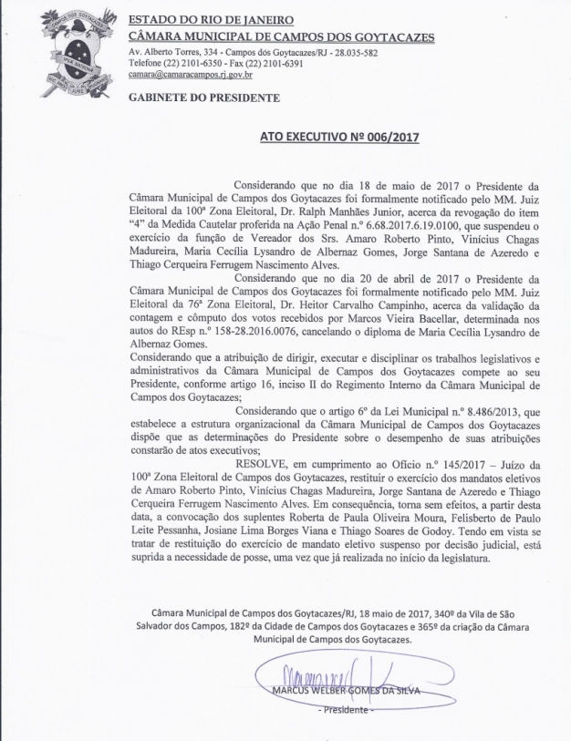 — A diretoria da ADUENF vem informar ao todos os associados que após examinar a grave conjuntura criada pelo governo Pezão, os professores presentes na assembleia da ADUENF decidiram por uma paralisação de 24 horas de todas as atividades docentes nesta quarta-feira (24/05), e a participação no ato público que diversas categorias de servidores públicos estaduais irão realizar a partir das 15h na Rodoviária Jorge Roberto da Silveira no centro de Campos dos Goytacazes — informou.