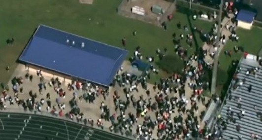 A polícia entrou no prédio principal da escola e conseguiu retirar centenas de alunos. Eles foram levados ao campo de futebol americano do colégio.