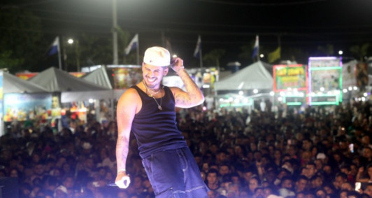 Cantor Zé Felipe canta para uma multidão na ExpoBarra